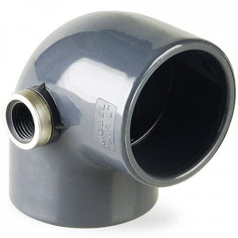 Коліно 63х90 с врізкою 1/2 РВ в бік